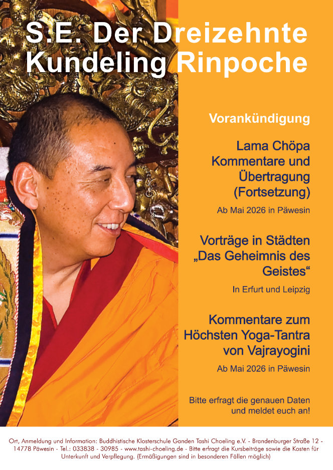 Sonderveranstaltungen des Ganden Tashi Choeling erhaltet Ihr gerne in unserem Büro